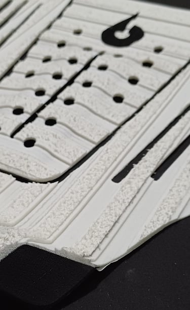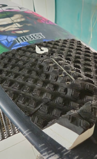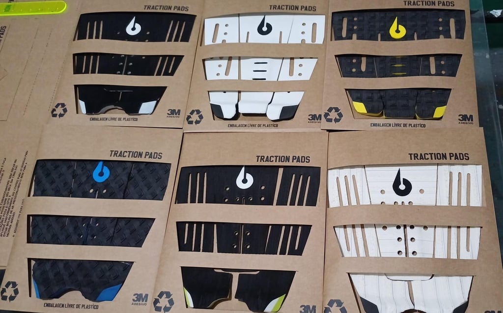 A fixação é outro ponto de destaque: utilizamos cola 3M original, referência mundial em aderência. Isso assegura que o antiderrapante permaneça firme na prancha mesmo após longas sessões de surf, exposição ao sol, mudanças de temperatura e contato constante com a água salgada.